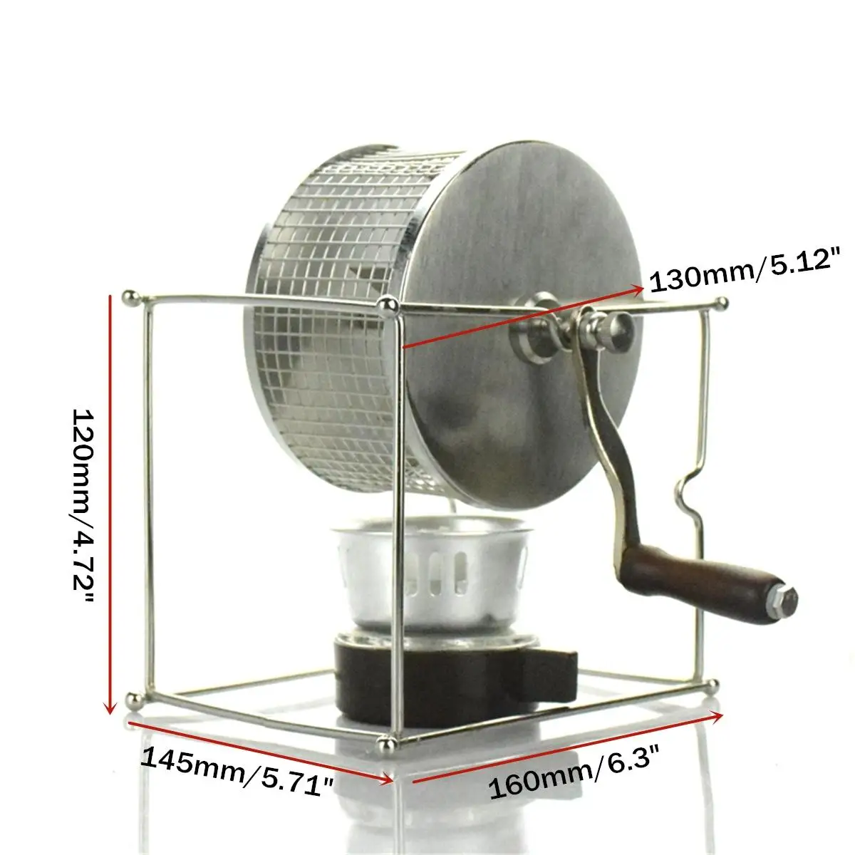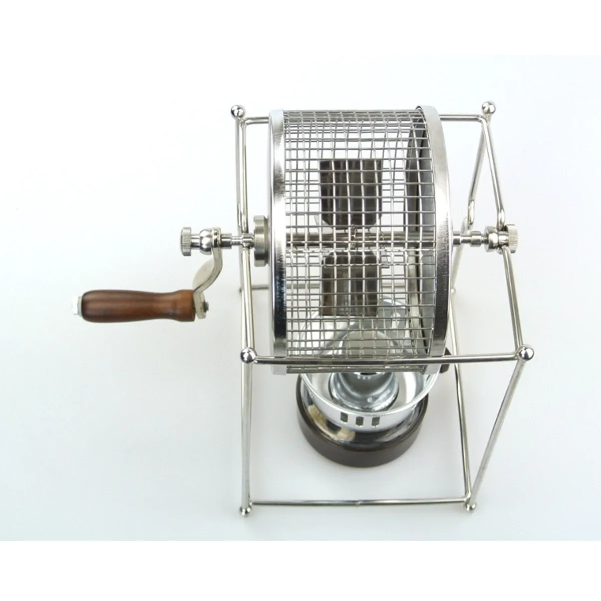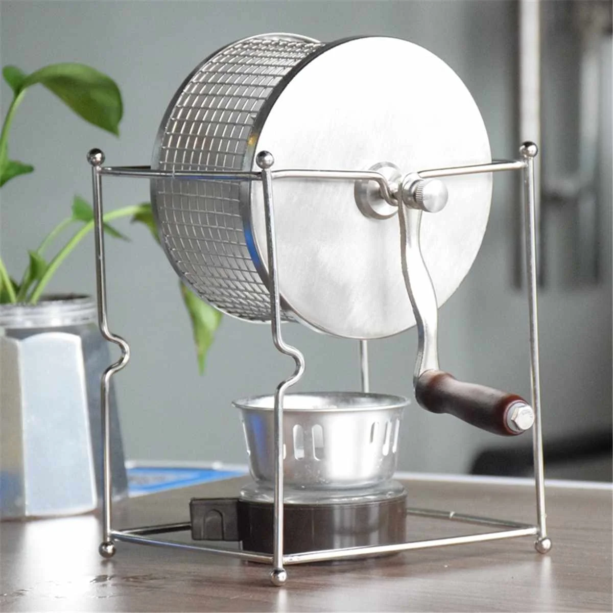 1. Put 100g of coffee beans to the grid, tighten the lid, heat the alcohol lamp